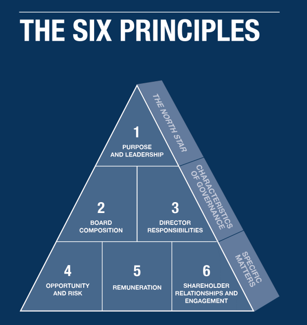 The Wates Principles for corporate governance focus on these six areas: