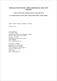 Financial Institutions: Taking Greenhouse Gases into Account – a report by CDSB for the Department for Environment, Food and Rural Affairs (UK)