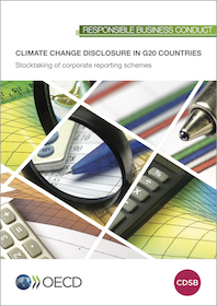 This paper is a summary of a report by the OECD and CDSB analysing government schemes in G20 countries promoting corporate disclosure of climate-change related information. The report explores convergence and differences among these schemes, the extent and depth of information requested, the use of information by companies, investors and other stakeholders, and a preliminary assessment of the use and impacts of these schemes in changing business conduct and ultimately in contributing to governments’ climate change objectives. View paper.