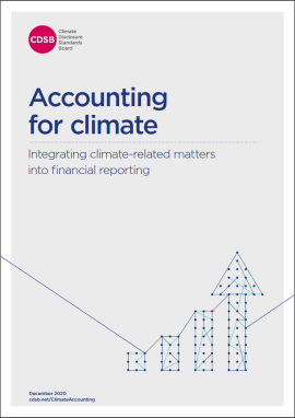 In December 2020, CDSB released guidance titled “Accounting for climate: Integrating climate-related matters into financial reporting” in order to answer three questions that are challenging preparers of financial statements: are climate-related matters relevant to financial reporting; how should climate-related matters be factored into a company’s financial reporting and what this might look like; and, what steps can companies take to integrate material climate-related matters into financial reporting?